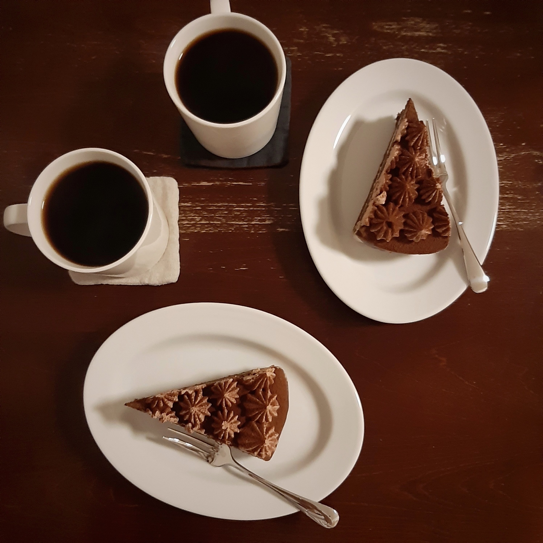 昨夜、ワクチンの影響かただ単に疲れていたのか、普段なら食べないようなもの、すっっごく甘いチョコレートクリームのケーキが無性に食べたくなって、夫に言って、買ってきてもらった。