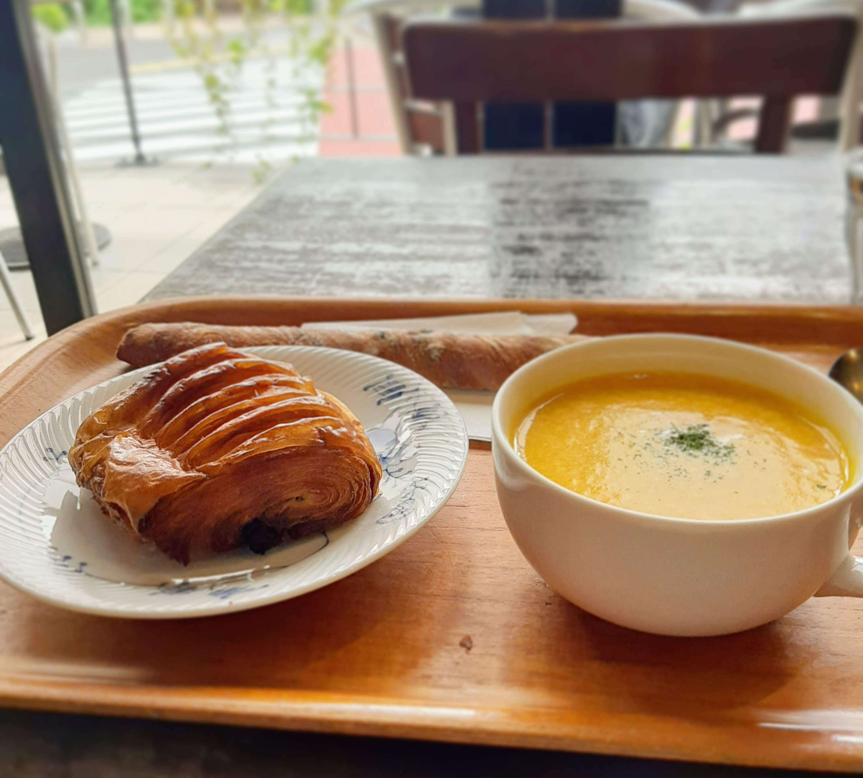 コーヒーくらいの大きさで来ると思ったかぼちゃスープが思いがけずたっぷり、