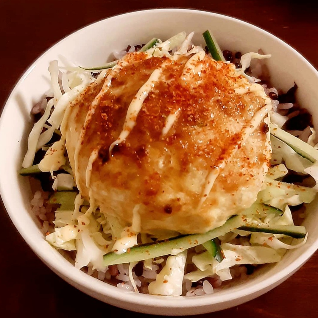 夫の反応の良かった昨日の夕飯、つくね丼。