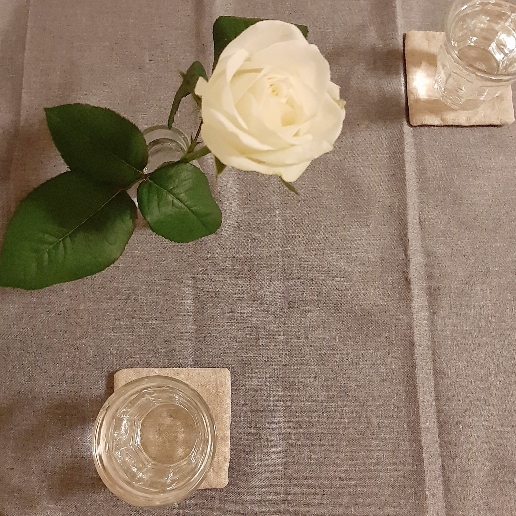 家に薔薇があるなんてめずらしくて、うきうき生けてテーブルに置いて、ながめながらごはんを食べる。