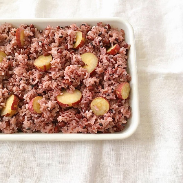 鳴門金時と黒米のお赤飯を。